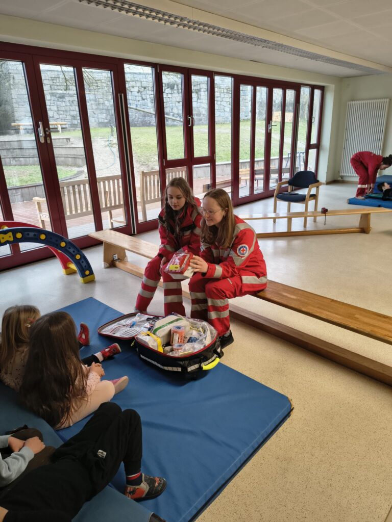 Anschließend konnten wir noch unser Einsatzfahrzeug vorstellen. Gemeinsam warfen wir einen Blick hinein und erklärten, welche Ausstattung wir bei Einsätzen dabeihaben und wie wir im Ernstfall vorgehen.